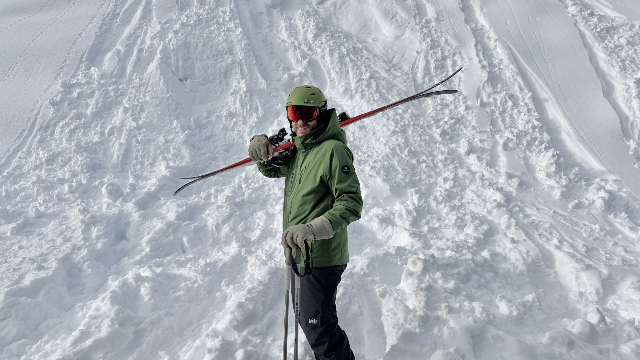 ski jacket men - ripping up the piste in the inexpensive rei co-op first chair gtx.